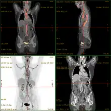 - ↑ Dellavedova L, Carletto M, Faggioli P, Sciascera A, Del Sole A, Mazzone A, Maffioli LS (2015). "The prognostic value of baseline 18F-FDG PET/CT in steroid-naïve large-vessel vasculitis: introduction of volume-based parameters". European Journal of Nuclear Medicine and Molecular Imaging. 55 (2): 340–8. doi:10.1007/s00259-015-3148-9. PMID 26250689.