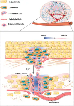 - ↑ Ma, Xiao; Geng, Ziang; Wang, Siqi; Yu, Zhongxue; Liu, Tiancong; Guan, Shu; Du, Shaonan; Zhu, Chen (September 2023). "The driving mechanism and targeting value of mimicry between vascular endothelial cells and tumor cells in tumor progression". Biomedicine & Pharmacotherapy. 165: 115029. doi:10.1016/j.biopha.2023.115029.