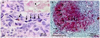 - 1 2 3 4 Mabeta, Peace (July 2020). "Paradigms of vascularization in melanoma: Clinical significance and potential for therapeutic targeting". Biomedicine & Pharmacotherapy. 127: 110135. doi:10.1016/j.biopha.2020.110135. hdl:2263/76222. PMID 32334374.