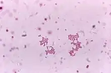 Veillonella parvula is a strictly anaerobic, Gram-negative, coccus-shaped bacterium in the genus Veillonella.[2] It is a normal part of the oral flora but can be associated with diseases such as periodontitis and dental caries as well as various systemic infections, including meningitis and osteomyelitis.[3] It has also been isolated from women with bacterial vaginosis and has been associated with hypertension together with Campylobacter rectus and Prevotella melaninogenica.[4]