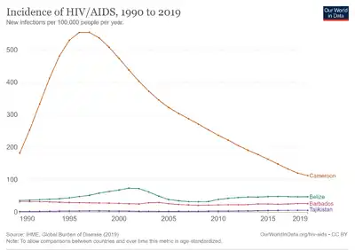 : CS1 maint: multiple names: authors list (link) - ↑ Phillips, Andrew N; Cambiano, Valentina; Nakagawa, Fumiyo; Brown, Alison E; Lampe, Fiona; Rodger, Alison; Miners, Alec; Elford, Jonathan; Hart, Graham; Johnson, Anne M; Lundgren, Jens; Delpech, Valerie C (2013). "HIV & AIDS Information :: Viral load and the risk of transmission - Primary infection and sexual transmission". PLOS ONE. 8 (2): e55312. Bibcode:2013PLoSO...855312P. doi:10.1371/journal.pone.0055312. PMC 3574102. PMID 23457467. Archived from the original on 2015-01-17. Retrieved 2015-02-01.