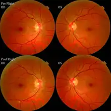 - ↑ Wiener, TC (January 2012). "Space obstructive syndrome: intracranial hypertension, intraocular pressure, and papilledema in space". Aviation, Space, and Environmental Medicine. 83 (1): 64–66. doi:10.3357/ASEM.3083.2012. PMID 22272520.