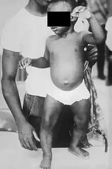 - ↑ Nabeta HW, Kasolo J, Kiggundu RK, Kiragga AN, Kiguli S (September 2015). "Serum vitamin D status in children with protein-energy malnutrition admitted to a national referral hospital in Uganda". BMC Research Notes. 8: 418. doi:10.1186/s13104-015-1395-2. PMC 4562347. PMID 26346815.
