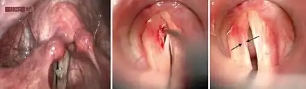 7. 1 2 3 4 5 6 Bohlender, Jörg (2013). "Diagnostic and therapeutic pitfalls in benign vocal fold diseases". GMS Current Topics in Otorhinolaryngology, Head and Neck Surgery. 12: Doc01. doi:10.3205/cto000093. PMC 3884536. PMID 24403969.