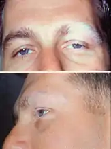 VKH syndrome is named for ophthalmologists Alfred Vogt from Switzerland and Yoshizo Koyanagi and Einosuke Harada from Japan.[12][13][14][15] Several authors, including the Arabic doctor Mohammad-al-Ghâfiqî in the 12th century as well as Jacobi, Nettelship and Tay in the 19th century, had described poliosis, neuralgias and hearing disorders.[15] This constellation was probably often due to sympathetic ophthalmia but likely included examples of VKH.[15] Koyanagi's first description of the disease was in 1914, but was preceded by Jujiro Komoto, Professor of Ophthalmology at the University of Tokyo, in 1911.[15] It was the much later article, published in 1929, that definitively associated Koyanagi with the disease.[15] Harada's 1926 paper is recognized for its comprehensive description of what is now known as Vogt–Koyanagi–Harada disease.[15]