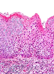 - Micrograph of differentiated vulvar intraepithelial neoplasia. H&E stain.