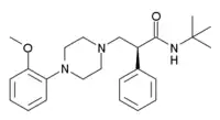 - ↑ Cliffe IA, Brightwell CI, Fletcher A, et al. (May 1993). "(S)-N-tert-butyl-3-(4-(2-methoxyphenyl)-piperazin-1-yl)-2-phenylpropanamide [(S)-WAY-100135]: a selective antagonist at presynaptic and postsynaptic 5-HT1A receptors". Journal of Medicinal Chemistry. 36 (10): 1509–10. doi:10.1021/jm00062a028. PMID 8496920.