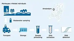 One example of this is the use of wastewater monitoring to detect the presence of the SARS-CoV-2 virus in populations during the COVID-19 pandemic.[3][4][5] In one study, wastewater surveillance showed signs of SARS-CoV-2 RNA before any cases were detected in the local population.[6]