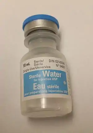 - 1 2 "Water for Injection - FDA prescribing information, side effects and uses". www.drugs.com. Archived from the original on 16 July 2017. Retrieved 14 January 2017.