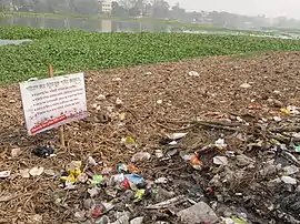 Water pollution is a major environmental issue in India. The largest source of water pollution in India is untreated sewage.[1] Other sources of pollution include agricultural runoff and unregulated small-scale industry. Most rivers, lakes and surface water in India are polluted due to industries, untreated sewage and solid wastes.[2][3] Although the average annual precipitation in India is about 4000 billion cubic metres, only about 1122 billion cubic metres of water resources are available for utilization due to lack of infrastructure.[4] Much of this water is unsafe, because pollution degrades water quality. Water pollution severely limits the amount of water available to Indian consumers, its industry and its agriculture.