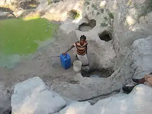 Figures on access are controversial. For example, the WHO/UNICEF Joint Monitoring Program for Water Supply and Sanitation estimates access to an at least basic source of water supply at 79% in urban areas and 32% in rural areas as of 2015.[4] However, the Ministry of Public Works uses the water access figures of 38% in urban areas and 40% in rural areas. The numbers for rural access are derived from the number of boreholes and an estimated average number of households using a borehole.[5]