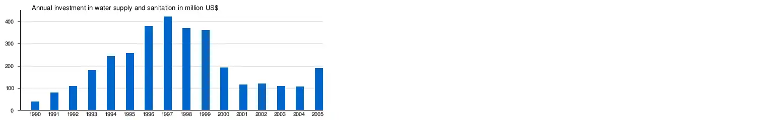 The government's draft National Sanitation Plan considers that investments of US$4,789 million would be needed in 2005-2015 (US$497 million/year) to achieve the Millennium Development Goals in the sector.[60]