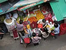 A wet market (also called a public market[4] or a traditional market[5]) is a marketplace selling fresh foods such as meat, fish, produce and other consumption-oriented perishable goods in a non-supermarket setting, as distinguished from "dry markets" that sell durable goods such as fabrics, kitchenwares and electronics.[6][10] These include a wide variety of markets, such as farmers' markets, fish markets, and wildlife markets.[14] Not all wet markets sell live animals,[17] but the term wet market is sometimes used to signify a live animal market in which vendors slaughter animals upon customer purchase,[21] such as is done with poultry in Hong Kong.[22] Wet markets are common in many parts of the world,[26] notably in China, Southeast Asia, and South Asia. They often play critical roles in urban food security due to factors of pricing, freshness of food, social interaction, and local cultures.[27]