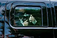 Later in the day, Trump briefly departed the hospital to ride past a gathering of supporters at the medical center, waving from the back seat of an SUV, before returning.[172] Medical experts stated that the short outing endangered the Secret Service agents accompanying Trump inside the vehicle due to his infection.[173][174] James Phillips, doctor of emergency medicine at George Washington University and an attending physician at Walter Reed, sharply criticized the drive-by as "insanity" for "political theater" and wrote that Trump had endangered the Secret Service agents in the presidential SUV by potentially exposing them to COVID-19.[175][176]