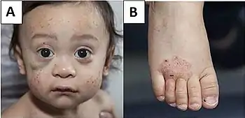 Wiskott–Aldrich syndrome (WAS) is a rare X-linked recessive disease characterized by eczema, thrombocytopenia (low platelet count), immune deficiency, and bloody diarrhea (secondary to the thrombocytopenia).[1] It is also sometimes called the eczema-thrombocytopenia-immunodeficiency syndrome in keeping with Aldrich's original description in 1954.[2] The WAS-related disorders of X-linked thrombocytopenia (XLT) and X-linked congenital neutropenia (XLN) may present with similar but less severe symptoms and are caused by mutations of the same gene.