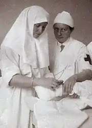 Women's participation in the medical professions was generally limited by legal and social practices during the decades while medicine was professionalizing.[41] Women openly practiced medicine in the allied health professions (nursing, midwifery, etc.), and throughout the nineteenth and twentieth centuries, women made significant gains in access to medical education and medical work through much of the world. These gains were sometimes tempered by setbacks; for instance, Mary Roth Walsh documented a decline in women physicians in the US in the first half of the twentieth century, such that there were fewer women physicians in 1950 than there were in 1900.[42] Through the latter half of the twentieth century, women made gains generally across the board. In the United States, for instance, women were 9% of total US medical school enrollment in 1969; this had increased to 20% in 1976.[42] By 1985, women constituted 16% of practicing American physicians.[43]