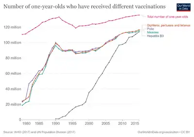 - ↑ World Health Organization, Immunization coverage. Archived 2017-07-13 at the Wayback Machine WHO Fact sheet N° 378, updated February 2014. Accessed 9 April 2014.