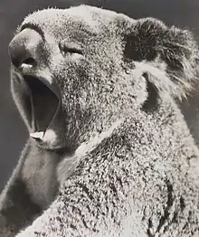 In animals, yawning can serve as a warning signal. Charles Darwin's book, The Expression of the Emotions in Man and Animals, mentions that baboons yawn to threaten their enemies, possibly by displaying large canine teeth.[62] Similarly, Siamese fighting fish yawn only when they see a conspecific (same species) or their own mirror-image, and their yawn often accompanies aggressive attack.[63] Guinea pigs also yawn in a display of dominance or anger, displaying their impressive incisor teeth. This is often accompanied by teeth chattering, purring and scent marking.