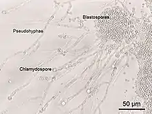 - ↑ Brunke S, Hube B (2013). "Two unlike cousins: Candida albicans and C. glabrata infection strategies". Cellular Microbiology. 15 (5): 701–708. doi:10.1111/cmi.12091. PMC 3654559. PMID 23253282.
