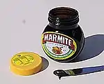 - Yeast extract, made from the intracellular contents of yeast and used as food additives or flavours. The general method for making yeast extract for food products such as Vegemite and Marmite on a commercial scale is heat autolysis, i.e. to add salt to a suspension of yeast, making the solution hypertonic, which leads to the cells' shrivelling up. This triggers autolysis, wherein the yeast's digestive enzymes break their own proteins down into simpler compounds, a process of self-destruction. The dying yeast cells are then heated to complete their breakdown, after which the husks (yeast with thick cell walls that would give poor texture) are removed. Yeast autolysates are used in Vegemite and Promite (Australia); Marmite (the United Kingdom); the unrelated Marmite (New Zealand); Vitam-R (Germany); and Cenovis (Switzerland).