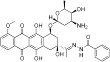 Zorubicin (INN) is a benzoylhydrazone derivative of the anthracycline antineoplastic antibiotic daunorubicin. Zorubicin intercalates into DNA; it as well interacts with topoisomerase II and inhibits DNA polymerases and therefore is used to treat cancer.[1] [2]