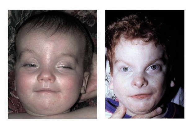 People with Miller-Dieker syndrome often have distinctive facial features that include a prominent forehead; a sunken appearance in the middle of the face (midface hypoplasia