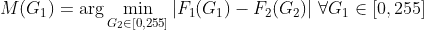 You would do this for all 256 values, and we would produce a mapping. Once you find this mapping, you simply have to apply this mapping on the first image to get it to look like the intensity distribution of the second image. A rough (and perhaps inefficient) algorithm would look something like this. Let im1 be the first image (of type uint8) while im2 is the second image (of type uint8):