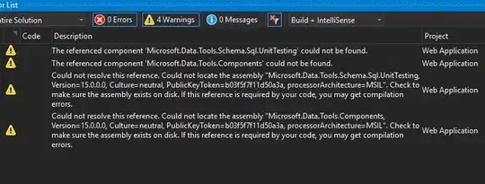 It tells me that the versions are mismatched and I have to create some assembly-bindings in the web.config file. Which I did, first manually, then via the double-click on the warning, as it suggested. Nothing changed. I still can't get my project build.