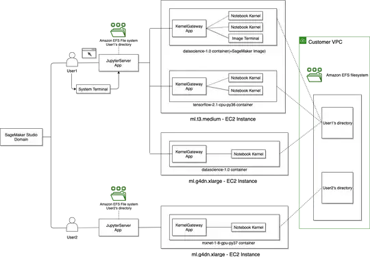 The /home/sagemaker-user directory is a mountpoint of an EFS, where your Jupyter file browser points to.