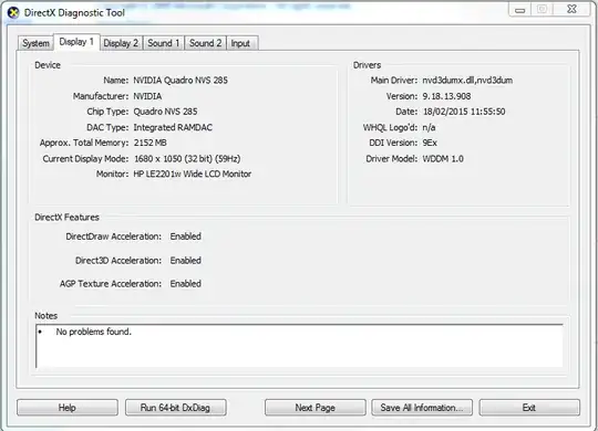 - Ran DirectX Diagnostic Tool and the results are below of the display screen.