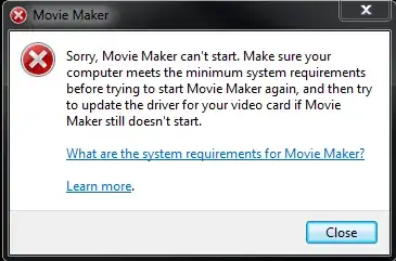I used to have Movie Maker installed and I used to use it frequently, however I did a fresh install of Windows 7 and since then I've not used it. I wanted to use it Yesterday but couldn't find it, so I ended downloading Windows Essentials 2012 and installed it. Now, however I am facing this error: