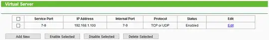 This redirects a request coming from WAN to the chosen IP above. I chose ports 7-9 so in case one doesn't work, I can use another. The default is port 9 for WoL. This setting can be found under Forwarding -> Virtual Server for a TP-Link router.