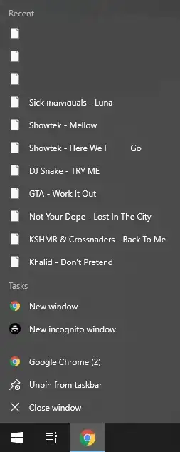 When I right click on the Google Chrome icon in the Taskbar/Start menu, I am able to see files in the recent list which I don't think Google Chrome should be able to read. Also these files aren't recent,some of which have been deleted.