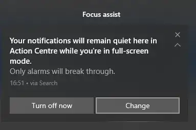 icon to tell me that. Hence I want the notification saying "Your notifications will remain quite here..." removed, while Focus Assist is on.