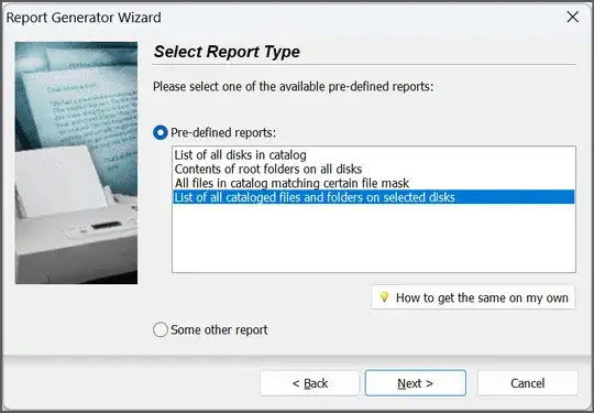 - Click Next to move on from the "Report Generator Wizard" description dialog box