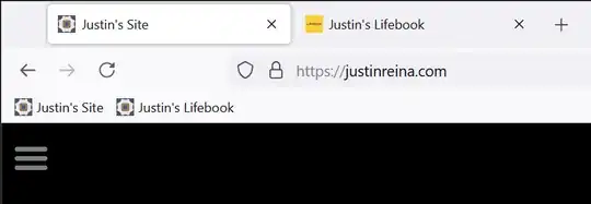 - Firefox shows the same justinreina.com/favicon.ico favicon for both sites