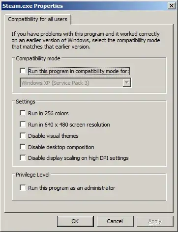 However, Steam.exe has no such settings enabled in the Compatibility tab of its properties: