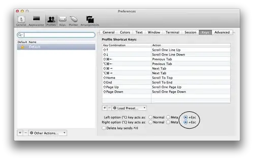 I am using oh-my-zsh configuration which has some handy bindkey condiguration. For example: "^[B" backward-word. On Linux I can use it with ease, but on OSX when I press alt-B i get some chars instead moving cursor. Can I configure somehow shortcuts alt+key on OSX or is there any trick to use them of of the box?