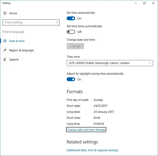 Formatssection, where there is a display-only summary of options, includingFirst day of week. Click the linkChange date and time FormatsOn the dialog that now appears, you can choose what one you want on the