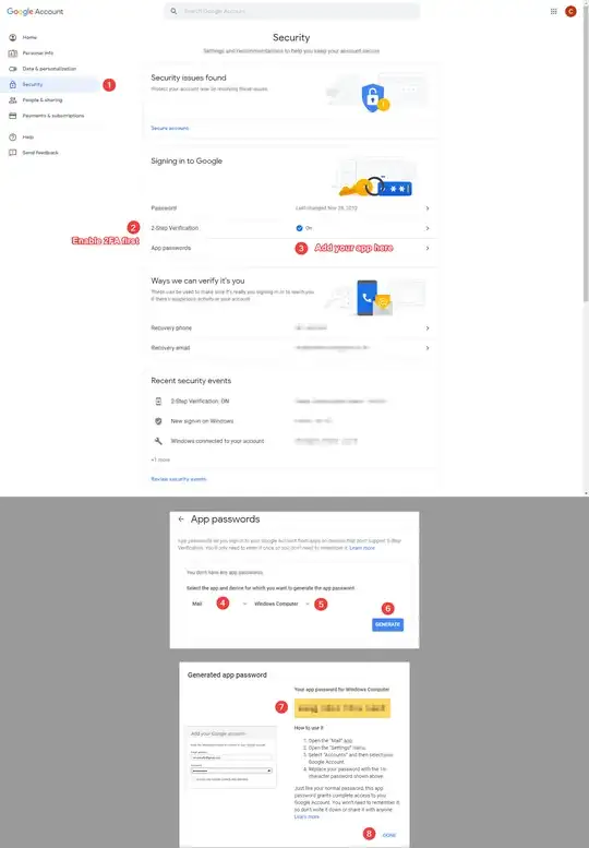 The results of research on the interwebs often recommend to first create a 2-hand-shake-password if turned on in Google. Well, that won't suffice, as I don't have any option to make anything. I just click on "Add Google Account" and the error instantly appears.