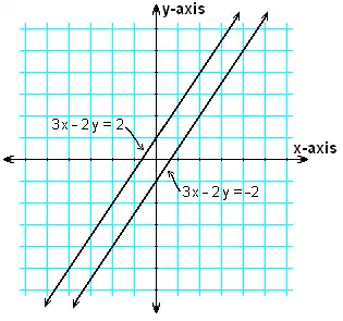 Now, both slopes are equal at 3/2, but the y-intercepts at 1 and -1 are different.
