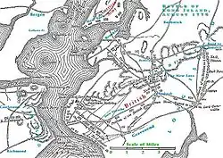 About half of Washington's army, led by Major General Israel Putnam, was deployed to defend the village of Flatbush near Brooklyn while the rest held Manhattan. In a night march suggested and led by Clinton, the British forces used the lightly defended Jamaica Pass to turn Putnam's left flank. The following morning, American troops were attacked and fell back. Men under General William Alexander numbering about 400 fought a delaying action at the Old Stone House near the Gowanus Creek, attacking and counter-attacking a British artillery position there and sustaining over 50% casualties. This significantly aided the withdrawal of most of Washington's army to fortifications on Brooklyn Heights.