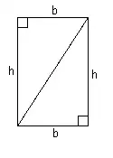 This is intuitively logical because another congruent right triangle can be placed against it so that the hypotenuses are the same line segment, forming a rectangle with sides having length b and width h. The area of the rectangle is b × h, so either one of the congruent right triangles forming it has an area equal to half of that rectangle.