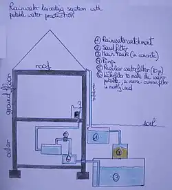 - ↑ Gravity-fed system trough height difference also sometimes enough for pressured water collection system