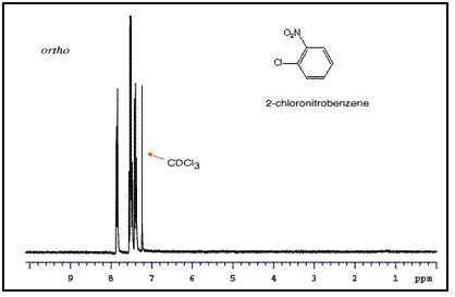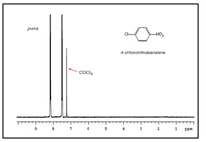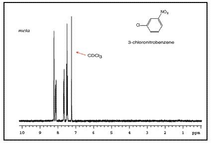 The order of these peaks is dependent on the nature of the two substituents. For example, the three NMR spectra of chloronitrobenzene isomers are below: