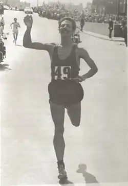 ![]() Mejía at the finish of the 1971 Boston Marathon | ||||||||||||||||||||||||||||||||||||||||||||||||