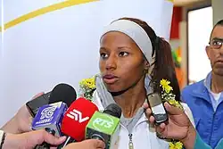 Ángela Gabriela Tenorio Micolta (born 27 January 1996 in Lago Agrio, Sucumbíos)[1] is an Ecuadorian athlete specialising in the sprinting events.[2] She won two medals at the 2014 World Junior Championships. Earlier she competed at the 2013 World Championships in the 100 metres without qualifying for the semifinals. In addition, she has won multiple medals on regional level.