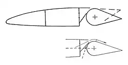 The aeroplane was a high-wing monoplane, of canard configuration. Two intakes, positioned midway along the fuselage, fed air to two high-pressure turbines, powered by a pair of 52 hp (39 kW) two-stroke engines. The compressed air was then expelled out over full-span flaps that formed the trailing edges of both the forewing and the main wing.[2] The aeroplane featured a fully faired fuselage, an enclosed cockpit, a central tailfin, and a fixed tricycle undercarriage.[3][4]