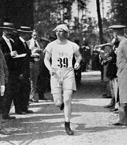 ![]() Åke Grönhagen running the cross-country leg of the pentathlon competition at the 1912 Olympics | |