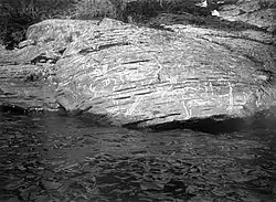 There are Petroglyphs at Landsverk and Håltbergsudden. The carvings at Landsverk consists of two of moose 1.5 metres (4 ft 11 in) meters long, and two smaller moose. The small ones may have been carved several hundred years after the large ones.[9] The large, naturalistic carvings are similar in style and technology to petroglyphs of the Norwegian Nordland coast, and are considered by scientists to be among the oldest rock carvings in Sweden.[7]